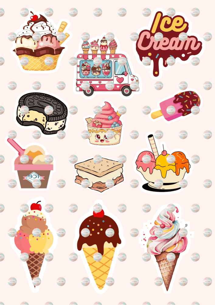 4️⃣ Cake & Ice Cream Stickers – 1 Page