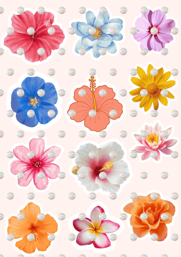 Beautiful kid-friendly flower illustrations in different shapes and colors. Great for spring crafts and decoration.